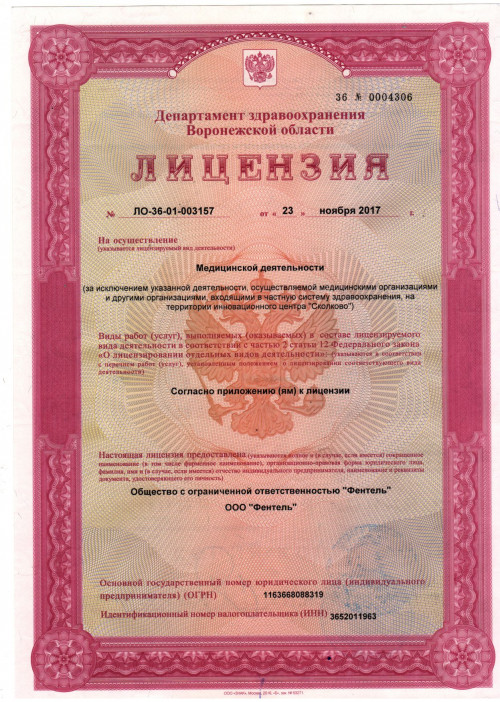 Мы заботимся о Вас! Поэтому перед каждой процедурой выдаётся договор на оказание платных медицинских услуг. Мы работаем на результат и для его достижения каждый сотрудник прикладывает максимум усилий к своей работе!